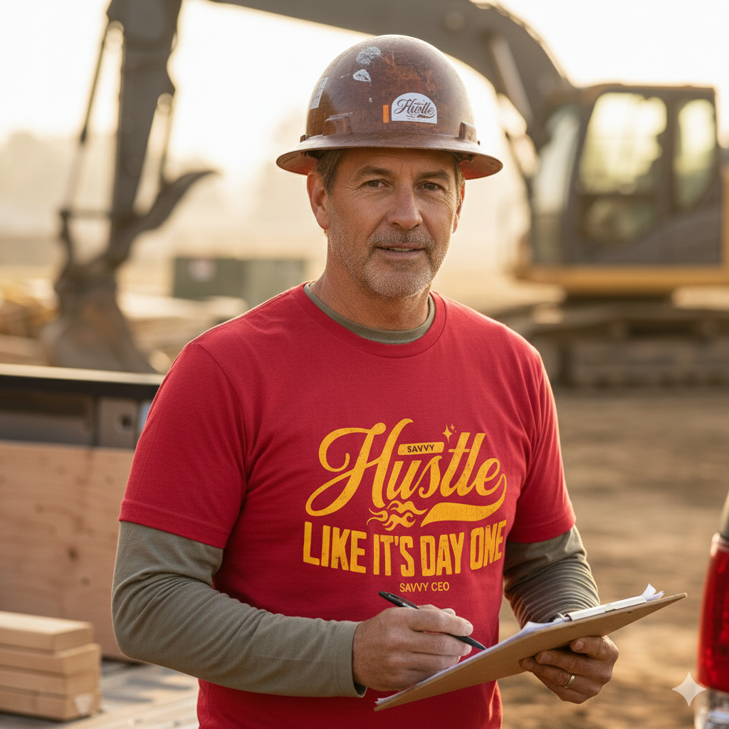 The “Hustle Like It’s Day One” tee is a reminder that no matter how far you’ve come, the fire that started it all still burns.